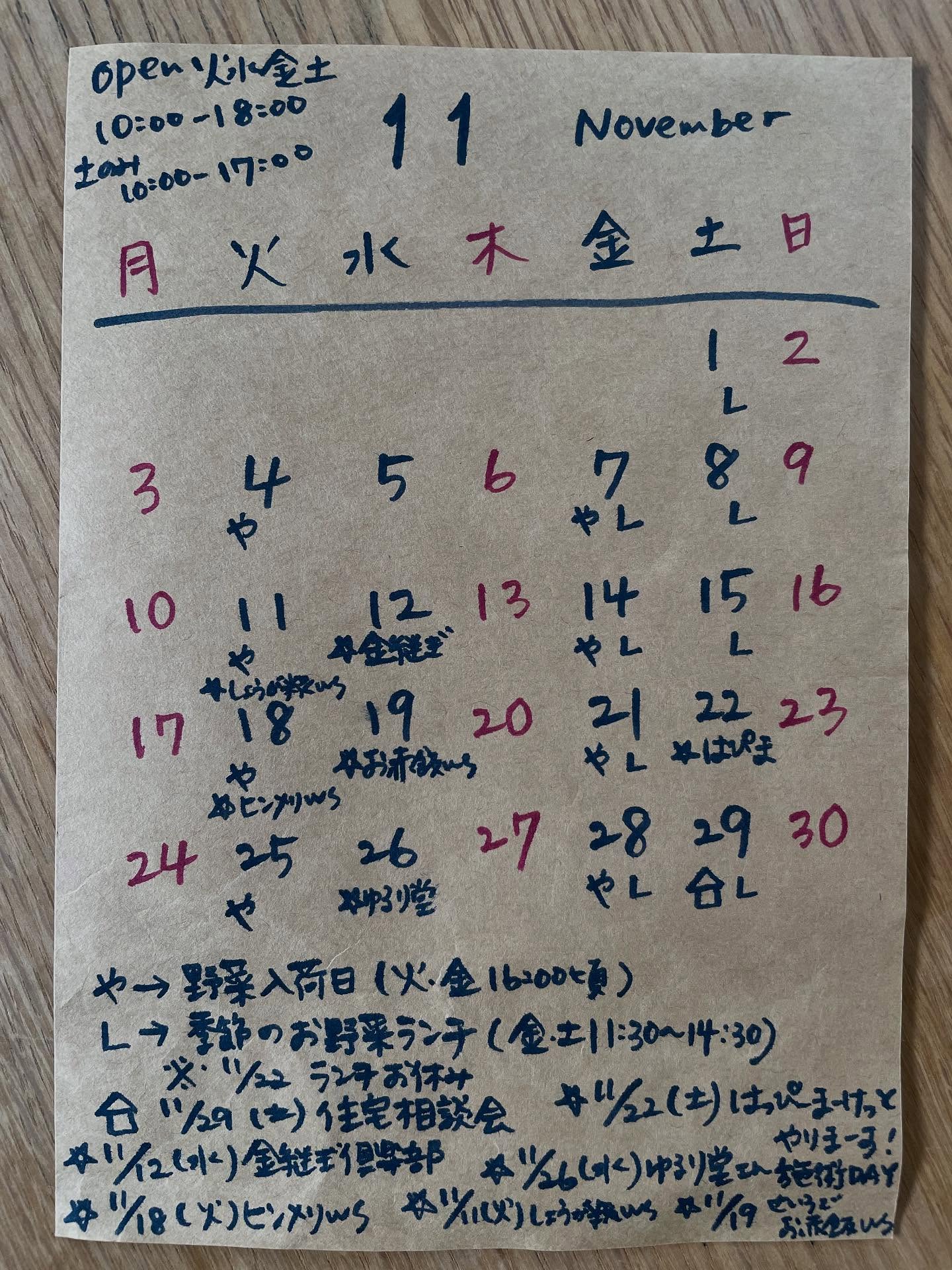 毎週金土11:30〜14:30 ※11/22(土)はランチお休み